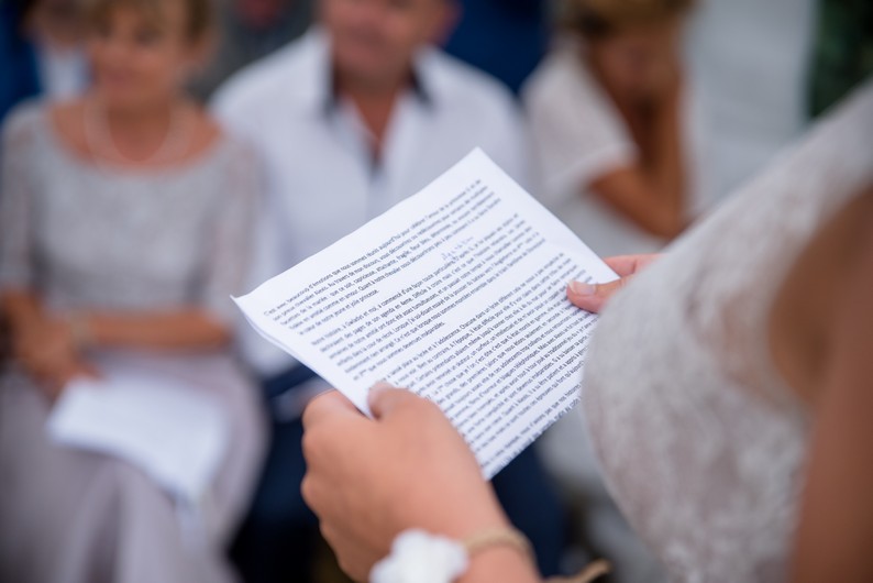 Après s’être dit oui à la mairie, les mariés ont convié toute la famille et les amis à une cérémonie laïque au cours de laquelle les mouchoirs furent les bienvenus pour toute cette émotion ! Ensuite, place au cocktail, avec des sirops aromatisés pour les petits (et les grands), des bonbons délicieux, et un peu de champagne pour les plus grands !