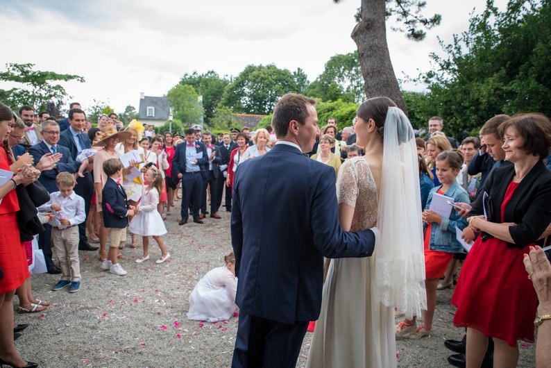 J’ai ensuite retrouvé les mariés le samedi pour le jour J. La mariée et le marié se sont préparés dans les grandes chambres du manoir, l’émotion était déjà très palpable. Ensuite, cérémonie religieuse à Gouesnac’h, et retour au manoir avec l’ensemble des invités pour les festivités. Cocktail avec ateliers & animations, surprise super héros de la part du marié et de ses témoins/amis, et super ambiance au programme. Et ceci, jusqu’au bout de la nuit !